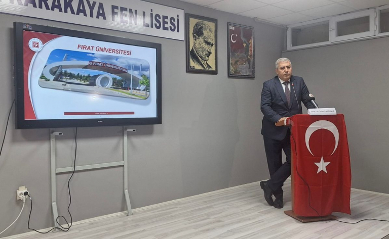 FÜ Rektör Yardımcısı Prof. Dr. İrfan Kaygusuz, Kaya Karakaya Fen Lisesinde öğrencilerle bir araya gelerek üniversitenin bilimsel faaliyetleri ve hedefleri hakkında kapsamlı bilgiler verdi. Prof. Dr. Kaygusuz, Fırat Üniversitesinin YÖK tarafından “Araştırma Üniversitesi” olarak seçilen üniversiteler arasında yer aldığını hatırlatarak, bu statünün ciddi bir akademik altyapı, güçlü araştırma ekosistemi ve yüksek nitelikli bilimsel üretim gerektirdiğini vurguladı.