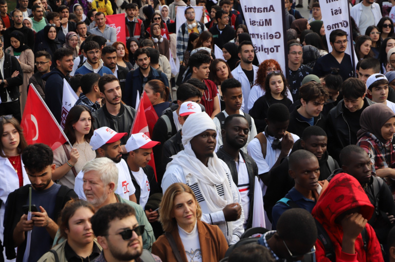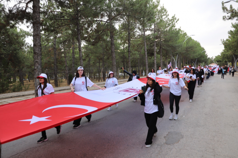 Etkinlik, sadece yerel katılımla sınırlı kalmadı. 40’a yakın ülkeden gelen uluslararası öğrenciler, kendi yöresel kıyafetleriyle yürüyüşte yer alarak kültürel bir mozaik oluşturdu.