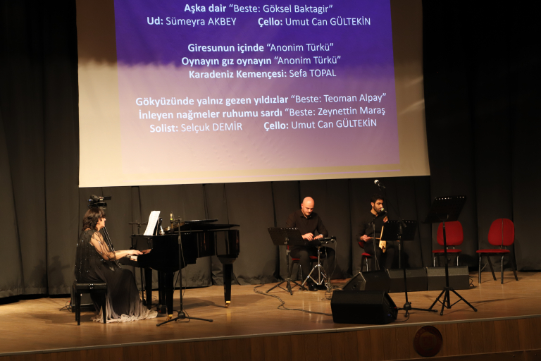 Atatürk Kültür Merkezi’nde gerçekleştirilen konser programına; Rektör Vekili Prof. Dr. İrfan Kaygusuz, Rektör Yardımcısı Prof. Dr. Mehmet Yılmaz, akademisyenler, öğrenciler ve çok sayıda vatandaş katıldı.