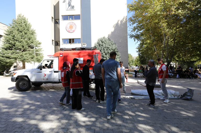 Fırat Üniversitesi Tıp Fakültesi, Elazığ Afet Müdahale Merkezi Müdürlüğü ve Türk Kızılay Elazığ Kan Bağışı Merkezi iş birliğiyle “Afetlere Dirençli Toplum” çalışmaları kapsamında uygulamalı eğitim programı gerçekleştirildi.