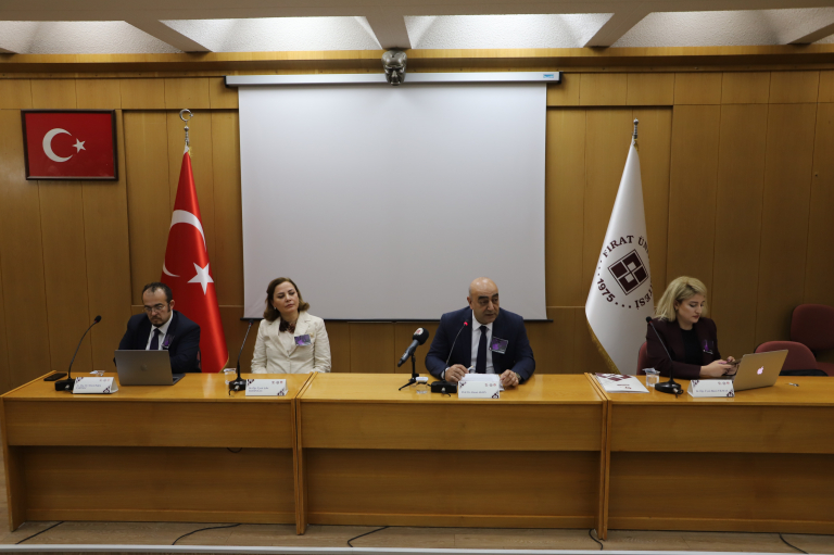 Bahaeddin Ögel Konferans Salonu’nda düzenlenen panele; Elazığ Vali Yardımcısı Armağan Yazıcı, FÜ Rektör Yardımcısı Prof. Dr. İrfan Kaygusuz, FÜ Kadın Kolları Başkanı Hülya Göktaş, fakülte dekanları, akademik ve idari personel ile öğrenciler katıldı.