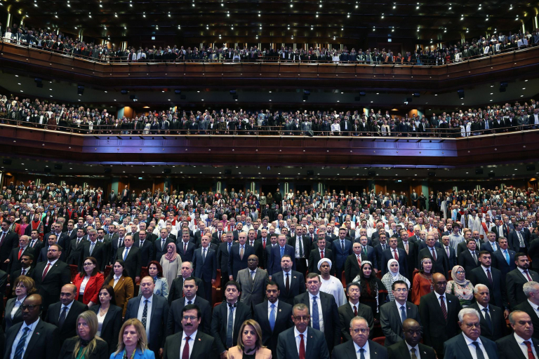 Cumhurbaşkanı Recep Tayyip Erdoğan törende yaptığı konuşmada, köklü bir mazinin, büyük bir medeniyetin, alim, arif ve eğitim kurumlarımızla çok zengin bir müktesebatın varisleri olduğumuza dikkati çekerek, özetle “İlhamını geçmişten alan parlak bir geleceği inşa etmek, Türkiye’nin yükseköğretimde ulaştığı seviyeyi yukarılara çıkarmak için kararlı bir şekilde çalışıyoruz. Teknik ve fiziki alt yapıdan eğitim kadrosuna, müfredattan yurt ve barınma imkânlarına kadar her alanda yepyeni bir vizyonla hareket ediyoruz. Nereden nereye geldiğimizi görebilmek adına çok kısa bir şekilde bazı rakamları sizlerle paylaşmak istiyorum. 2002’de yükseköğretime ayrılan bütçe yalnızca 2,5 milyar liraydı; bugün yükseköğretim bütçemiz tam 488,5 milyar liraya ulaştı. 23 yıl önce üniversite sayımız 76’ydı. Bugün 81 ilimizin tamamında 79’u vakıf, 129’u devlet üniversitesi olmak üzere 208 yükseköğretim kurumumuz var” değerlendirmesinde bulundu.