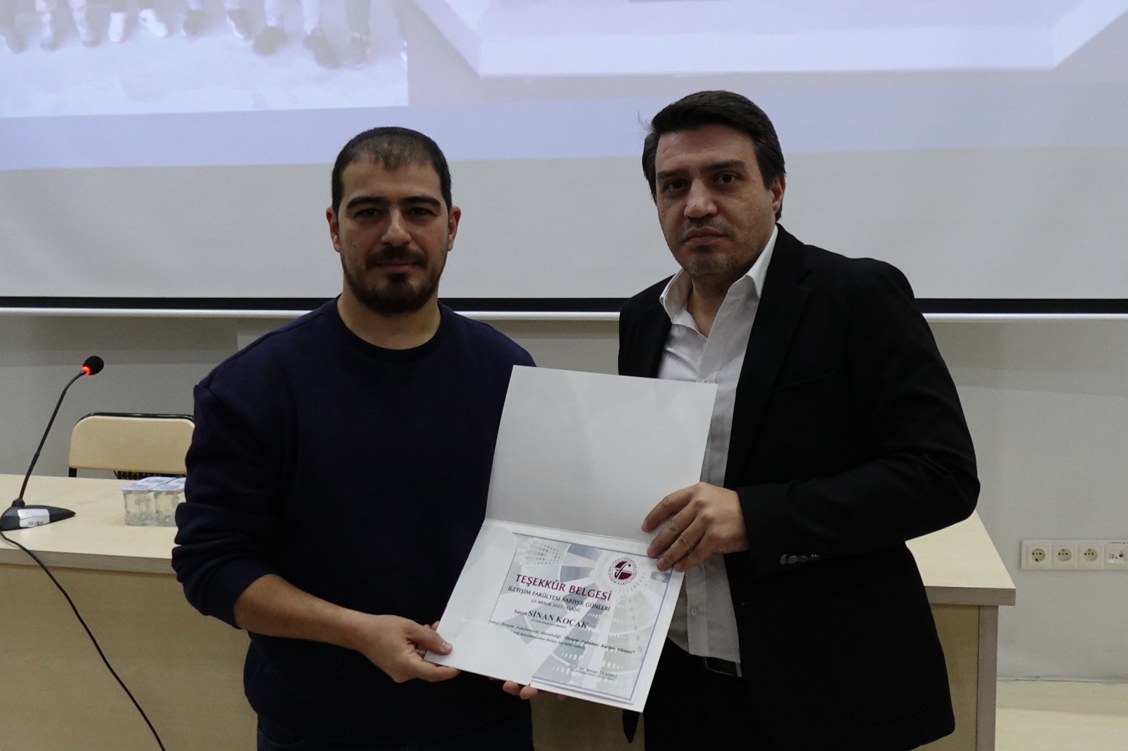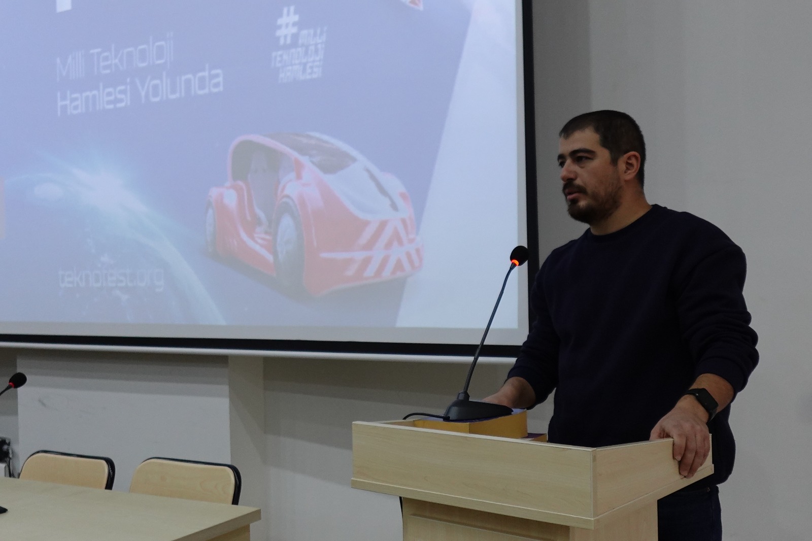 Söyleşide konuşan T3 Vakfı Elazığ İl Temsilcisi Sinan Koçak, Millî Teknoloji Hamlesi kapsamında yürütülen çalışmalar hakkında bilgi verdi. Astronomi ve Uzay Bilimleri alanında eğitim aldığını belirten Koçak, İstanbul ve Konya’daki çeşitli bilim merkezlerinde görev yaptığını da aktardı. Konuşmasının başında öğrencilere “Millî Teknoloji Hamlesi denildiğinde aklınıza gelen ilk kelime nedir?” sorusunu yönelten Koçak, gençlerin teknoloji ve yerli üretime bakış açılarını dinledi. Nitelikli birey sayısının artmasının, Türkiye’nin dışa bağımlılığını azaltacağını ifade eden Koçak, söyleşinin soru-cevap bölümünde öğrencilerle fikir alışverişinde bulundu.