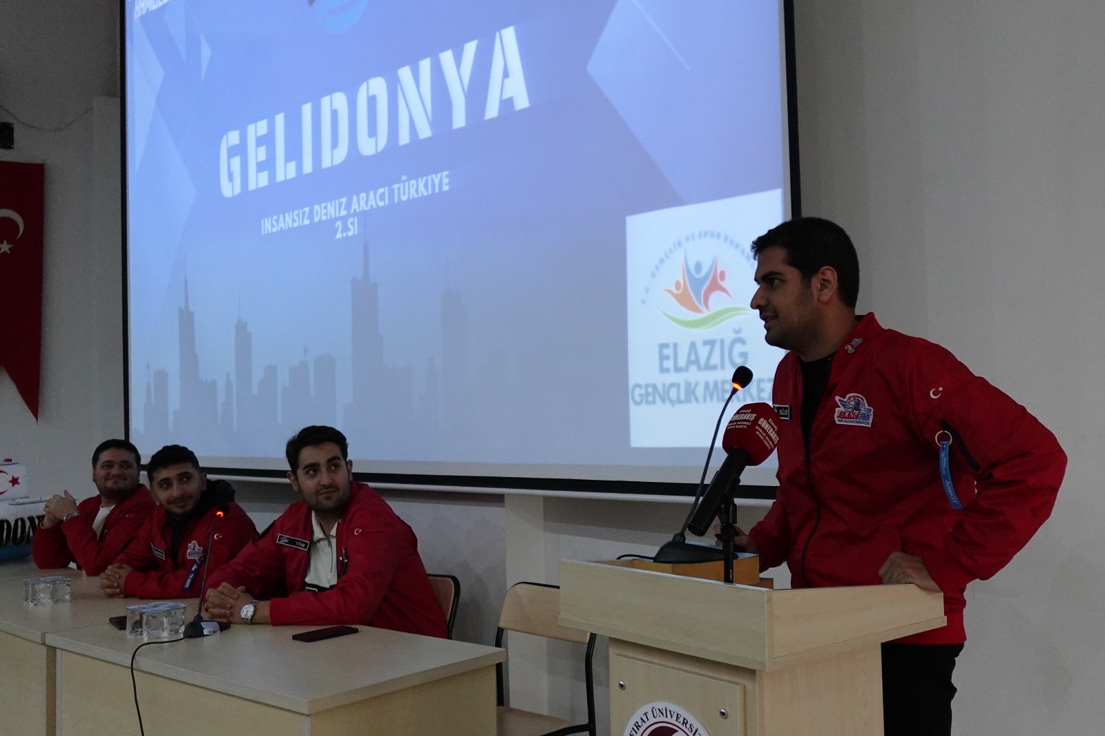 TEKNOFEST kapsamında düzenlenen İnsansız Deniz Aracı Yarışması’nda Türkiye ikincisi olan Gelidonya Takımı da deneyimlerini öğrencilerle paylaştı. Takım Kaptanı Yunus Emre Güler, Elazığ Şehit Muammer Faruk Salgar Gençlik Merkezi bünyesinde bir araya geldiklerini ifade etti. Yarışma sürecinde ilk prototiplerini sergilediklerini belirten Güler, final öncesinde yoğun bir hazırlık süreci yaşadıklarını ve testlerini Sivrice Hazar Gölü’nde gerçekleştirdiklerini söyledi. Finalde 28 takım arasından Türkiye ikincisi olmanın gururunu yaşadıklarını dile getiren Güler, “Çok yoğundu, çok yorucuydu ama değdi” ifadelerini kullandı.